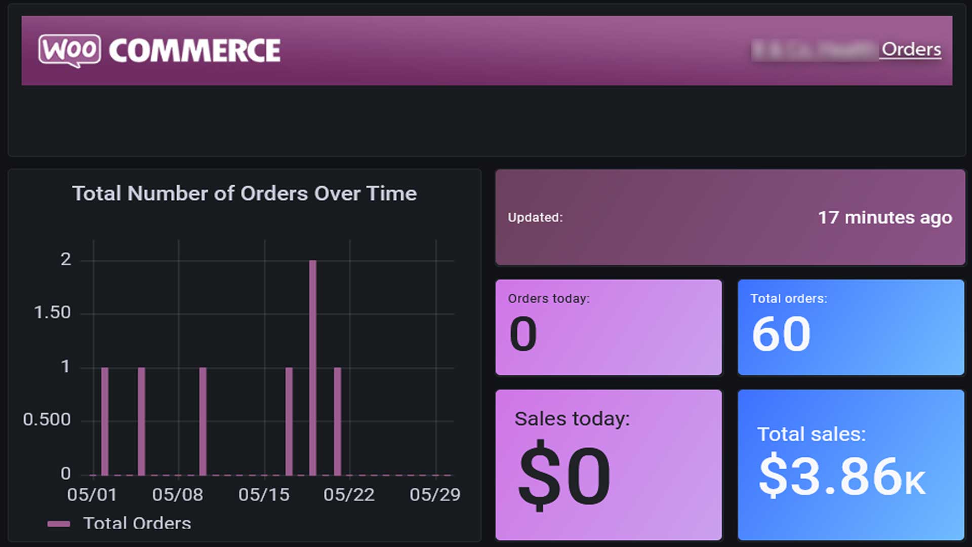 Once all of these elements were set up, I created an automated extractor that ran on a schedule (in the case every 5 minutes), dumped the WooCoomerce extracted API data into a cloud database, and then visualized the resultant data using Grafana.